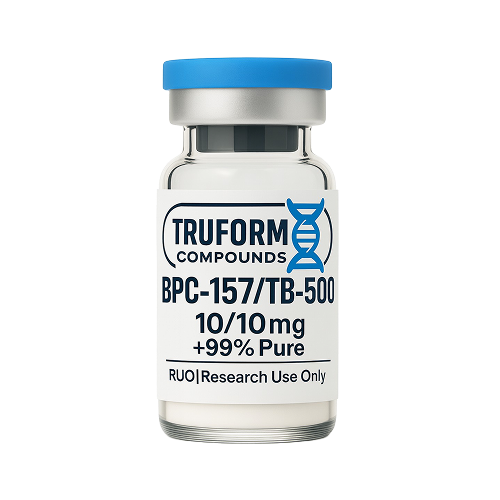 This blend combines BPC-157, a synthetic peptide derived from gastric proteins, with TB-500, a thymosin beta-4 fragment. Researchers use this combination in non-human models to study tissue-specific repair mechanisms, angiogenesis, and cellular migration in various experimental settings.