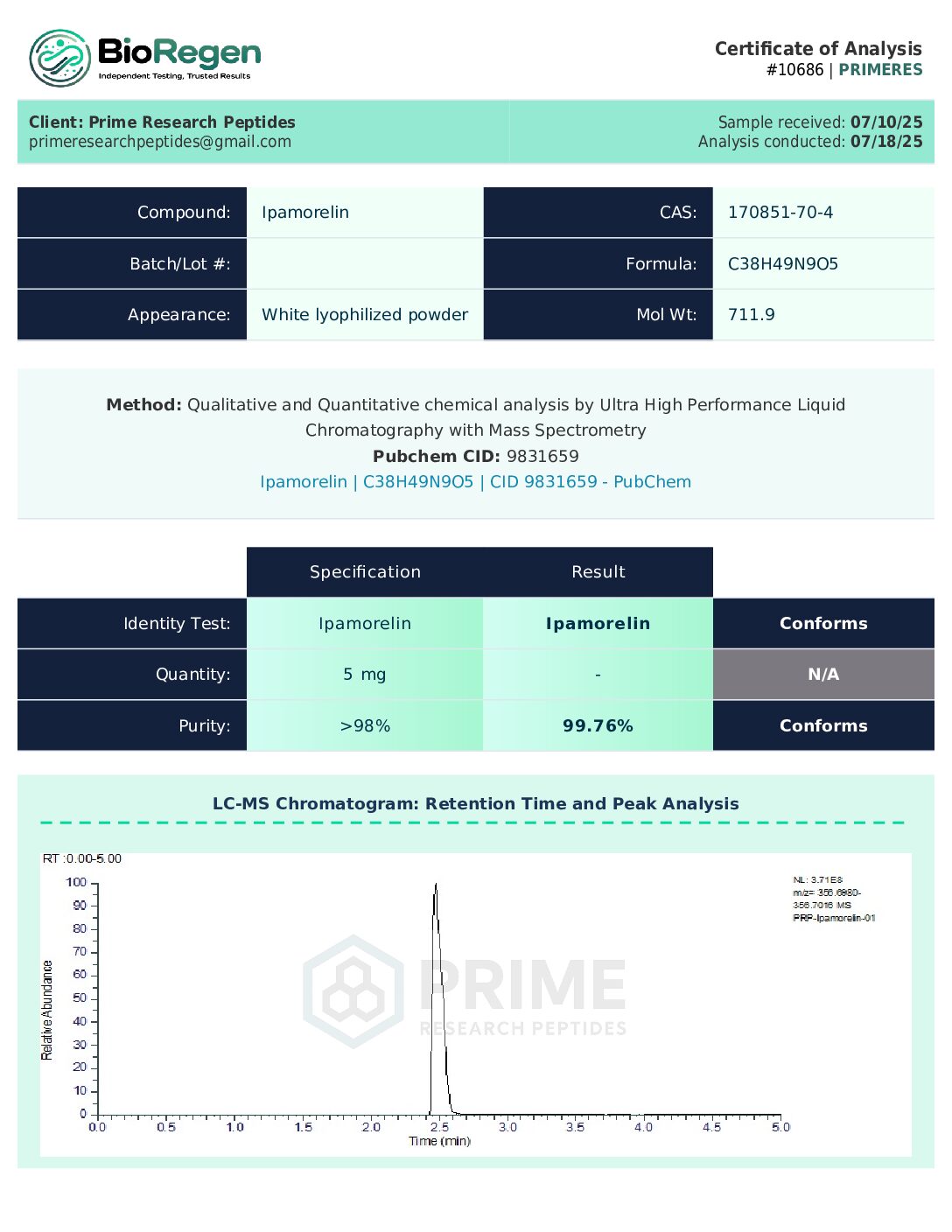 Ipamorelin is a selective ghrelin receptor agonist studied for its role in stimulating growth hormone release. Research using non-human models focuses on its receptor specificity, signaling mechanisms, and minimal impact on other hormonal pathways.